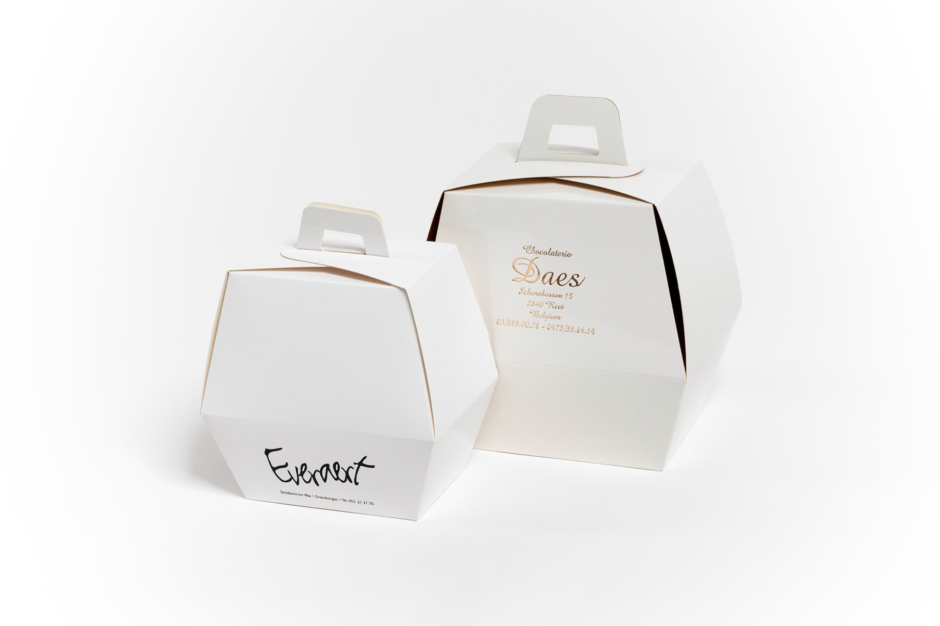 Pack shots voor Verpakkingen de Groof op witte egale achtergrond.